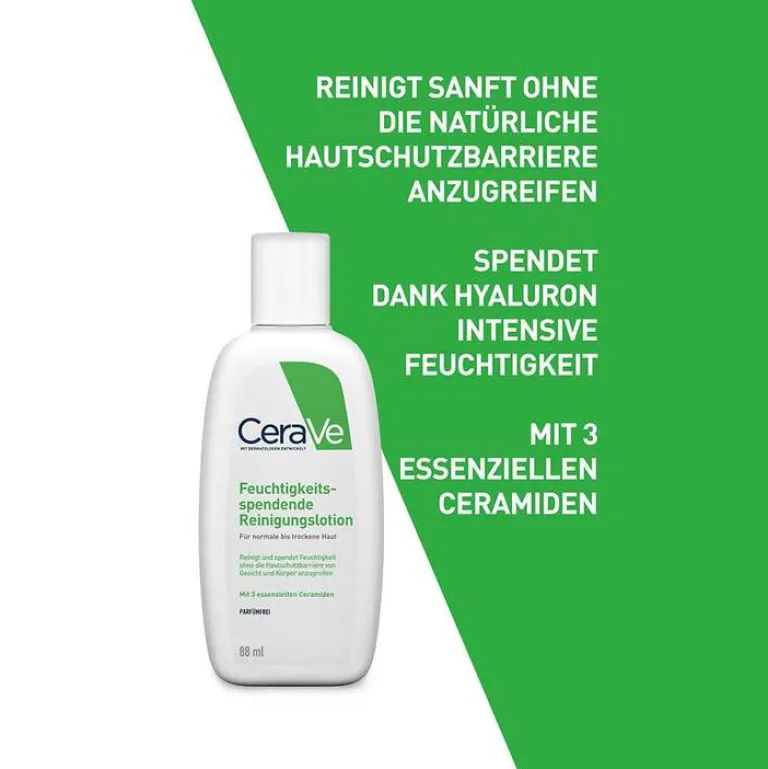 Dank der MVE-Technologie werden die Aktiv-Wirkstoffe schrittweise freigesetzt und wirken so besonders lange. Die sanfte CeraVe Reinigungscreme schäumt nicht, ist nicht-komedogen und verzichtet auf Dufstoffe – auch ideal für Kinderhaut und Allergiker geeignet.