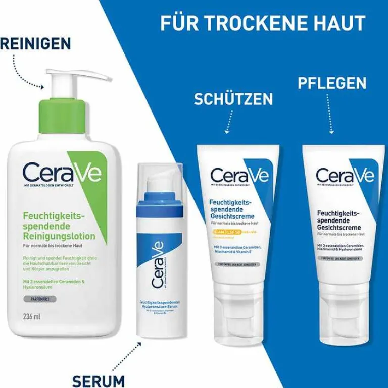 Dank der leichten, nicht-fettenden Gel-Textur zieht das Feuchtigkeitsserum schnell ein und hinterlässt eine geglätte und hydratisierte Haut. Das Serum eignet sich für trockene bis normale Haut und kann als alleinige Feuchtigkeitspflege dienen oder unter einer Feuchtigkeitscreme, wie z. B. der CeraVe feuchtigkeitsspendenden Gesichtscreme, angewendet werden.