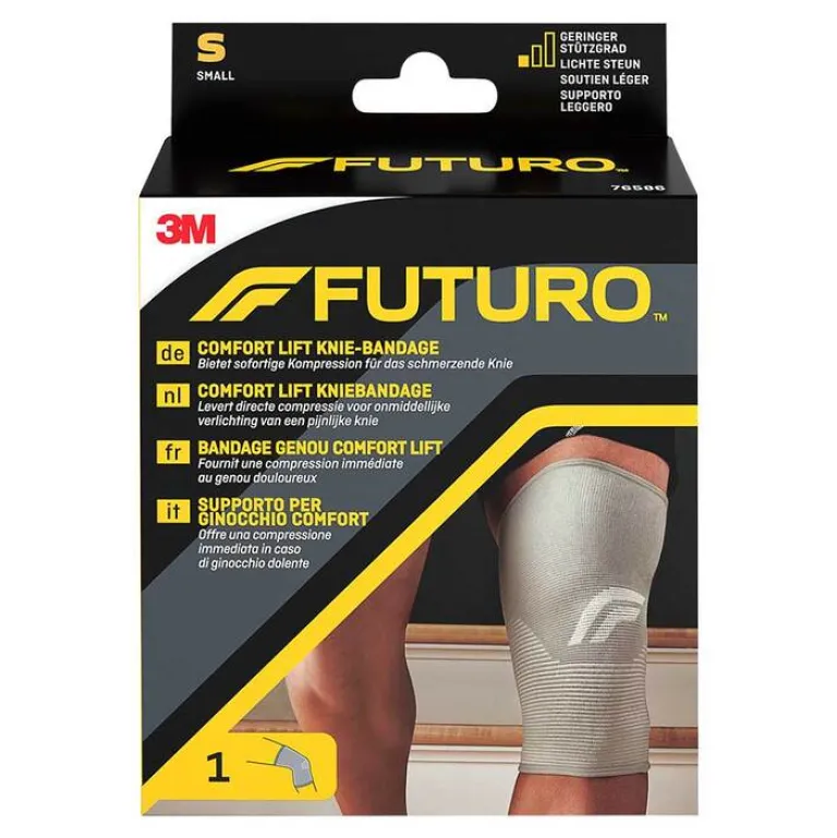 Die FUTURO™ Comfort Lift Knie-Bandage ist Ihre Lösung für eine sanfte Unterstützung. Die komfortable Knie-Bandage aus elastischer Maschenware ist flach und flexibel, sorgt für natürliche Bewegungsfreiheit und passt unter die Kleidung. Atmungsaktive Eigenschaften erhöhen den Tragekomfort. Tun Sie, was Sie nicht lassen möchten – die FUTURO™ Comfort Lift Knie-Bandage unterstützt Sie dabei.