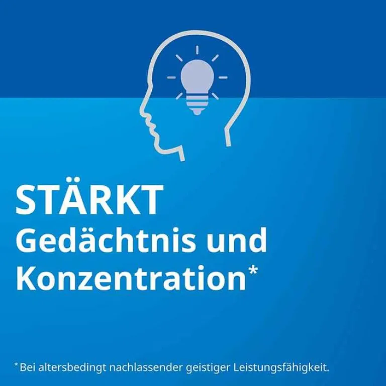 - Stärkt Gedächtnis und Konzentration bei altersbedingt nachlassender geistiger Leistungsfähigkeit
