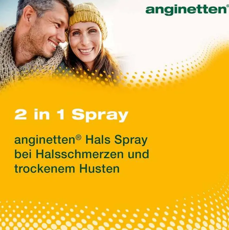 Das anginetten® Hals Spray 2 in 1 ist ein Medizinprodukt mit einer Honig-Rezeptur zur Beruhigung von Husten und zur Linderung von Halschmersymptomen. Das Spray bildet einen Schutzfilm im Rachenraum, der die gereizte Schleimhaut schützt und den Husten lindert.