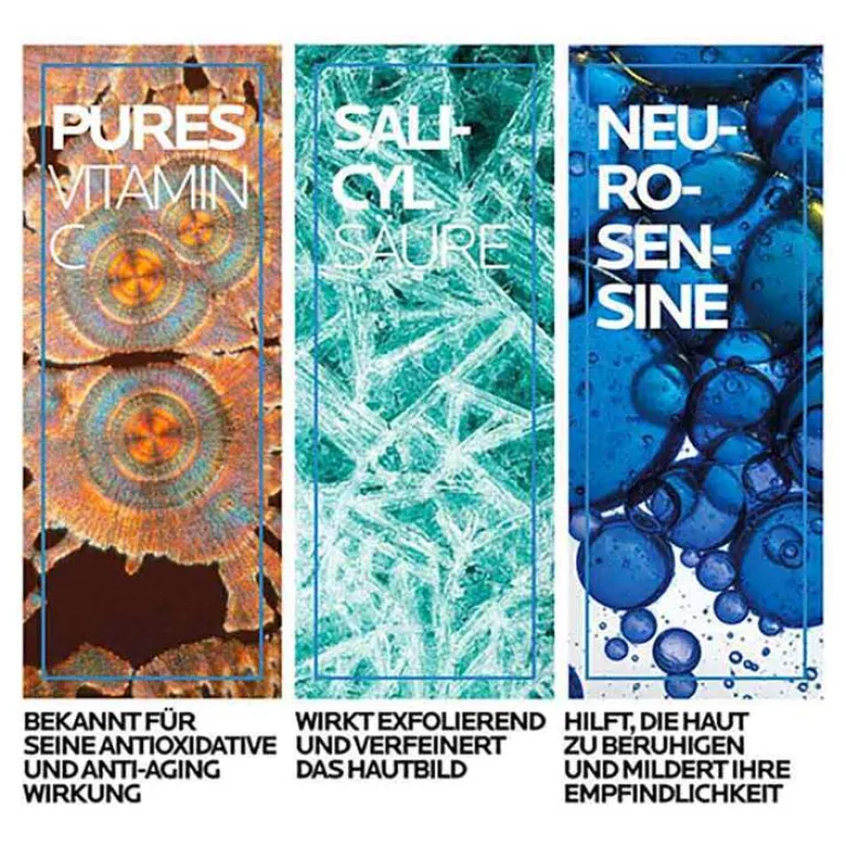 Das Ergebnis: Die Haut wirkt glatter. Beruhigende Inhaltsstoffe wie Thermalwasser aus La Roche-Posay und Neurosensinen sorgen dafür, dass das Vitamin C Serum auch bei empfindlicher Haut optimal verträglich ist. Das Serum zieht sofort ein und ist durch das geglättete Hautgefühl auch ideal als Make-up-Basis geeignet.