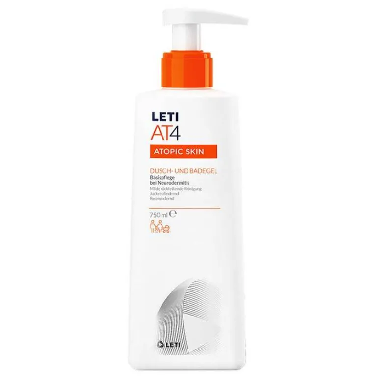 Das extra milde LETI AT4 Dusch- & Badegel trocknet die Haut nicht aus und erhält die Geschmeidigkeit der Haut. Aufgrund seiner milden und rückfettenden Eigenschaften ist das LETI AT4 Dusch- & Badegel für die tägliche Anwendung geeignet, insbesondere bei Neurodermitis und atopischer Haut.
