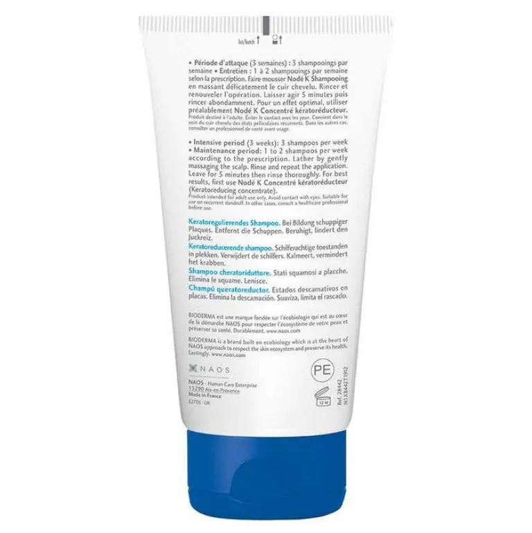 Das milde Anti-Schuppen-Shampoo Node K von Bioderma hilft effektiv bei wiederkehrenden, hartnäckigen, trockenen Schuppen mit Juckreiz. Es ist ideal bei zu Psoriasis (Schuppenflechte) neigender Kopfhaut. Schuppenkrusten werden gelöst und deren Neubildung wird vorgebeugt.