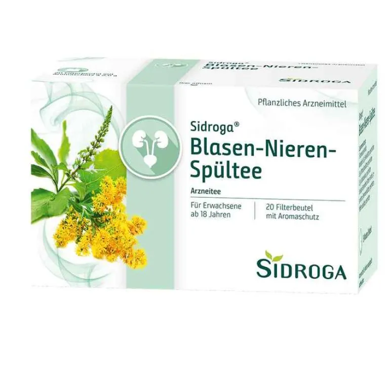Sidroga® Blasen-Nieren-Spültee Anwendungsgebiete: traditionelles pflanzliches Arzneimittel zur Durchspülung der ableitenden Harnwege als unterstützende Behandlung bei leichteren Harnwegsbeschwerden und zur Verminderung der Ablagerung von Nierengrieß ausschließlich auf Grund langjähriger Anwendung. Zu Risiken und Nebenwirkungen lesen Sie die Packungsbeilage und fragen Sie Ihre Ärztin, Ihren Arzt oder in Ihrer Apotheke. Sidroga GfGmbH, 56119 Bad Ems.