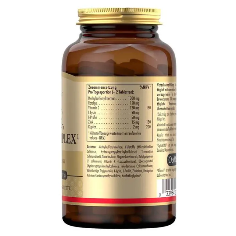- Nahrungsergänzungsmittel mit MSM®, Rotalge, Vitamin C, L-Lysin, L-Prolin, Zink und Kupfer