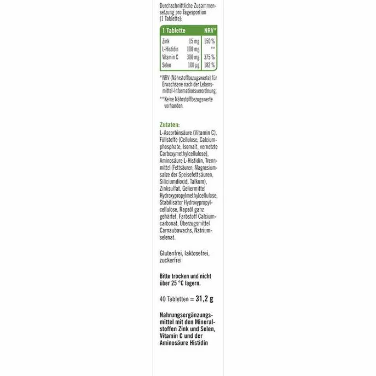 - Nahrungsergänzungsmittel mit Zink, Selen, Histidin und Vitamin C