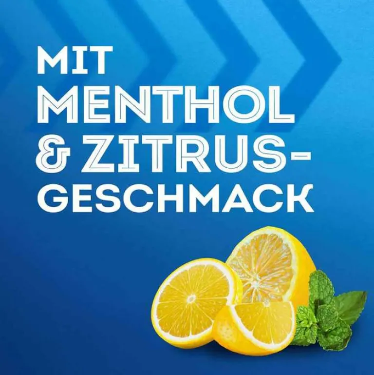 Sonstige Bestandteile: Sucrose, Citronensäure, Weinsäure (Ph. Eur.), Natriumcyclamat, Natriumcitrat, Aspartam (E 951), Acesulfam-Kalium (E 950), pulverförmiges Menthol, Citronen-Aroma, Citronensaft-Aroma, Chinolingelb (E 104)