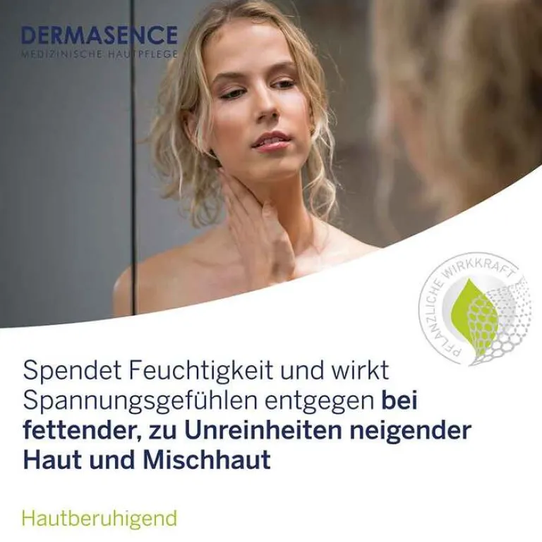 Tipp: Zur pH-Wert regulierenden Reinigung verwenden Sie Dermasence Mousse Reinigungsschaum. Reinigen Sie anschließend mit Dermasence Tonic nach. Bei Unreinheiten nachts das Dermasence Seborra hautklärende Serum anwenden.