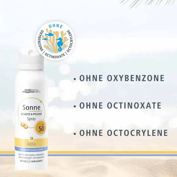 Das Sonne Schutz & Pflege Aktiv Aerosol-Spray ist ein ultraleichtes transparentes Spray für den Körper und das Gesicht. Es bietet hohe Sicherheit und Hautschutz bei intensiver Sonneneinstrahlung.