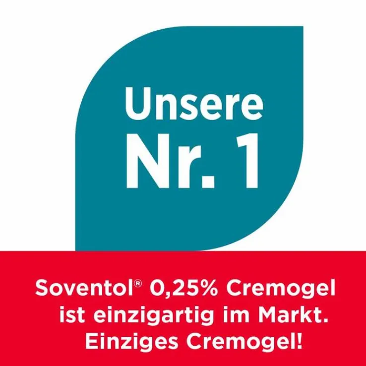 Soventol® Hydrocortisonacetat 0,25% 2,5 mg/g Creme. Anwendungsgebiete: Zur Behandlung von entzündlichen und allergischen Dermatosen (Hautentzündungen und Ekzeme) mit geringer bis mittlerer Symptomausprägung, die auf eine äußerliche Behandlung mit schwach wirksamen Corticosteroiden ansprechen. Zu Risiken und Nebenwirkungen lesen Sie die Packungsbeilage und fragen Sie Ihre Ärztin, Ihren Arzt oder in Ihrer Apotheke. Stand 07/2022. MEDICE Arzneimittel, 58638 Iserlohn