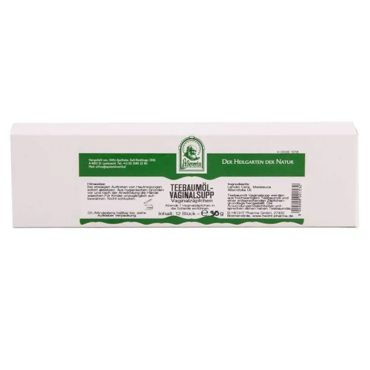 Teebaumöl Vaginalsupp enthält Teebaumöl in einer Zäpfchengrundlage.