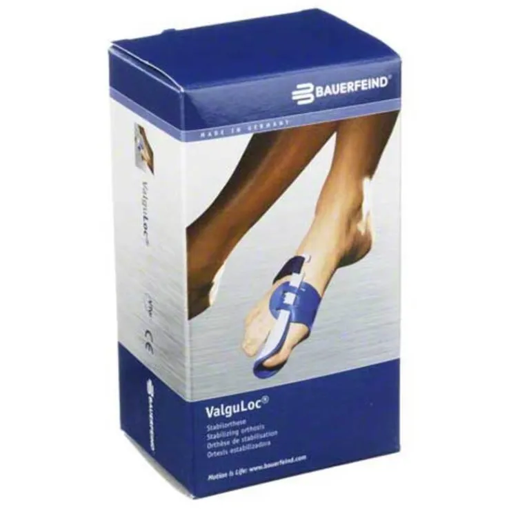 Die ValguLoc Orthese wird zur Korrektur einer Fehlstellung in den großen Zehen (Hallux valgus) eingesetzt. Sie kann im frühen Stadium oder nach einer operation eingesetzt werden. Durch ihre starre Form ist sie nicht zum gehen geeignet und wird nur Barfuß getragen.