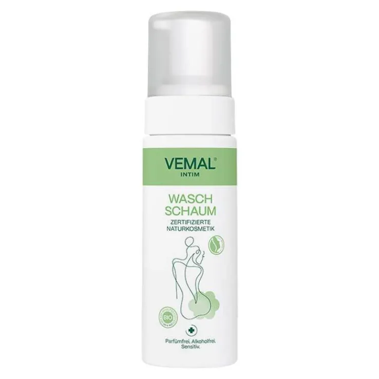 Zyklusbedingt kommt es häufig zu einer beanspruchten, trockenen oder rissigen Haut im Intimbereich. Der sanfte Vemal Intim Waschschaum wurde speziell für die schonende Reinigung im Intimbereich entwickelt. Für ein Gefühl von Frische und Komfort – jeden Tag. Die parfüm- und alkoholfreien Rezeptur mit Bio-Inhaltstoffen und optimalen pH-Wert beugt Irritationen vor. Die sanfte Formel sorgt für eine besonders verträgliche Anwendung auch bei sehr empfindlicher Haut.