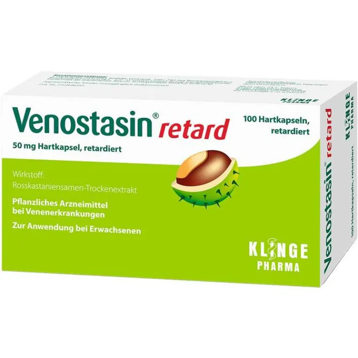 Venostasin® retard 50 mg Hartkapsel, retardiert: Wirkstoff: Rosskastaniensamen-Trockenextrakt. Anwendungsgebiet: Bei Erwachsenen zur Behandlung v. Beschwerden bei Erkrankungen der Beinvenen (chronische Veneninsuffizienz), z.B. Schmerzen u. Schweregefühl i. d. Beinen, nächtliche Wadenkrämpfe, Juckreiz u. Ödeme. Warnhinweise: Arzneimittel f. Kinder unzugängl. aufbewahren. Stand: 04/17-2 Zu Risiken und Nebenwirkungen lesen Sie die Packungsbeilage und fragen Sie Ihre Ärztin, Ihren Arzt oder in Ihrer Apotheke. Klinge Pharma GmbH, 83607 Holzkirchen, Deutschland