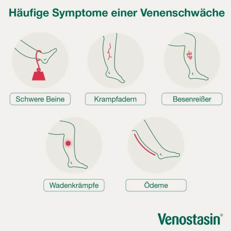 Die Einnahme von Venostasin® retard ersetzt aber nicht sonstige vorbeugende Maßnahmen oder Behandlungsmaßnahmen wie z. B. kalte Wassergüsse oder das Tragen ärztlich verordneter Stützstrümpfe.
