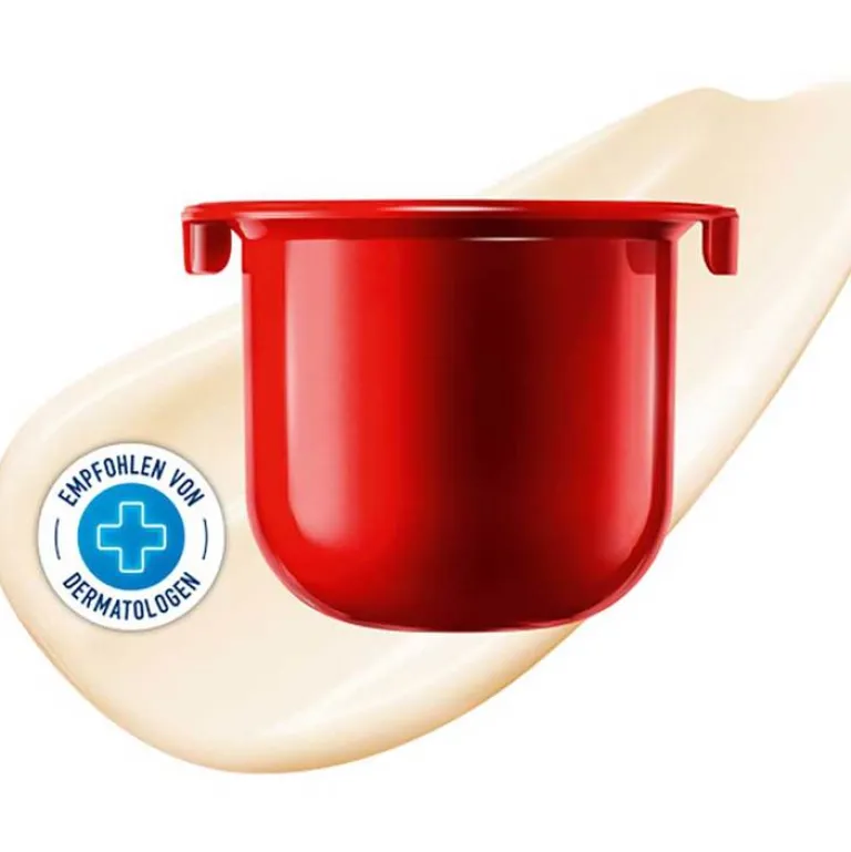 Um die Creme nachzufüllen, den Tiegel herausnehmen und Creme aus der Nachfüllpackung in den Glasbehälter geben.