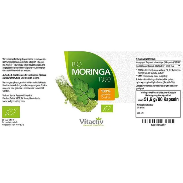 Vitactiv Bio Moringa 1350 mg Kapseln, 90 St