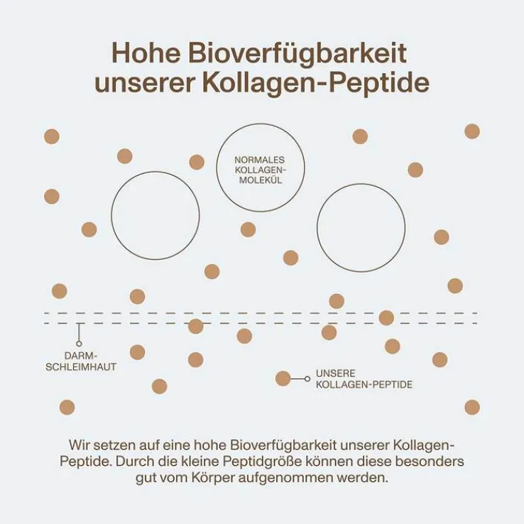- hydrolysiertes Kollagen Typ I und III für eine hohe Bioverfügbarkeit