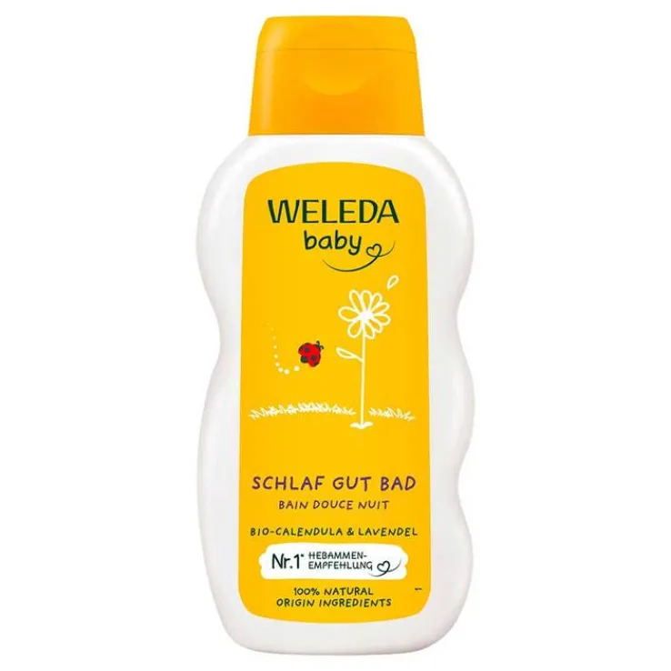 Schenken Sie Ihrem Baby ein entspannendes Baderitual am Abend mit dem Calendula Schlaf Gut Bad von Weleda! Die sanfte Formel wurde mit Hebammen und Apotheker:innen entwickelt, reinigt sanft, ohne auszutrocknen und sorgt für eine seidenweiche Haut. Im warmen Wasser entfaltet die Formel mit Lavendel und Neroli ihren angenehmen Duft.