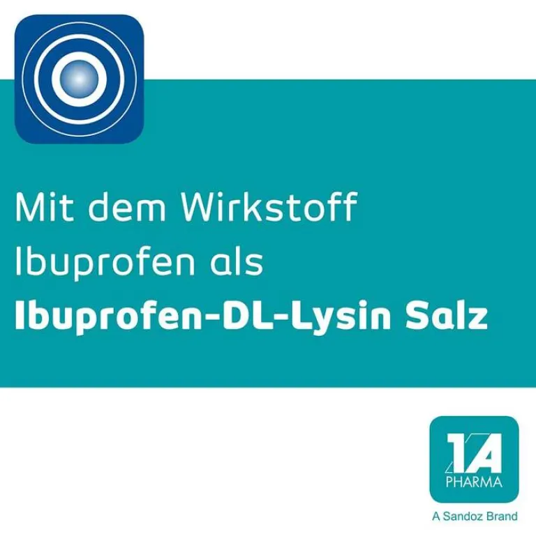 - Mit dem schmerzstillenden und entzündungshemmenden Wirkstoff Ibuprofen – als Salz mit dem Wirkbeschleuniger Lysin.