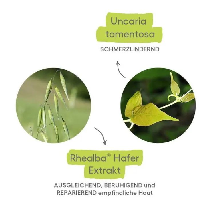 Das A-Derma Cutalgan Spray kombiniert zwei natürliche Aktivstoffe Uncaria Tomentosa Extrakt und Rhealba Jungpflanzenextrakt.