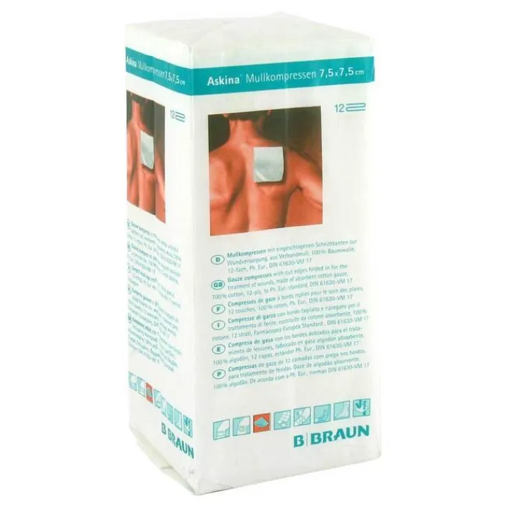 ASKINA Mullkompressen 7,5×7,5 cm 12fach unsteril