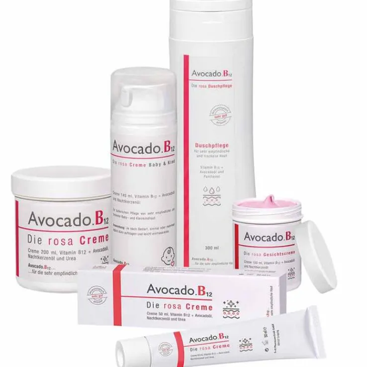 Die rosa Creme ist eine besonders sanfte Hautpflege, die mit Avocadoöl, Nachtkerzenöl und Vitamin B12 in einer einzigartigen Galenik die Hautregeneration fördert, Feuchtigkeitsverlust vermindert und so die sensible Haut schützt und glatt erhält.