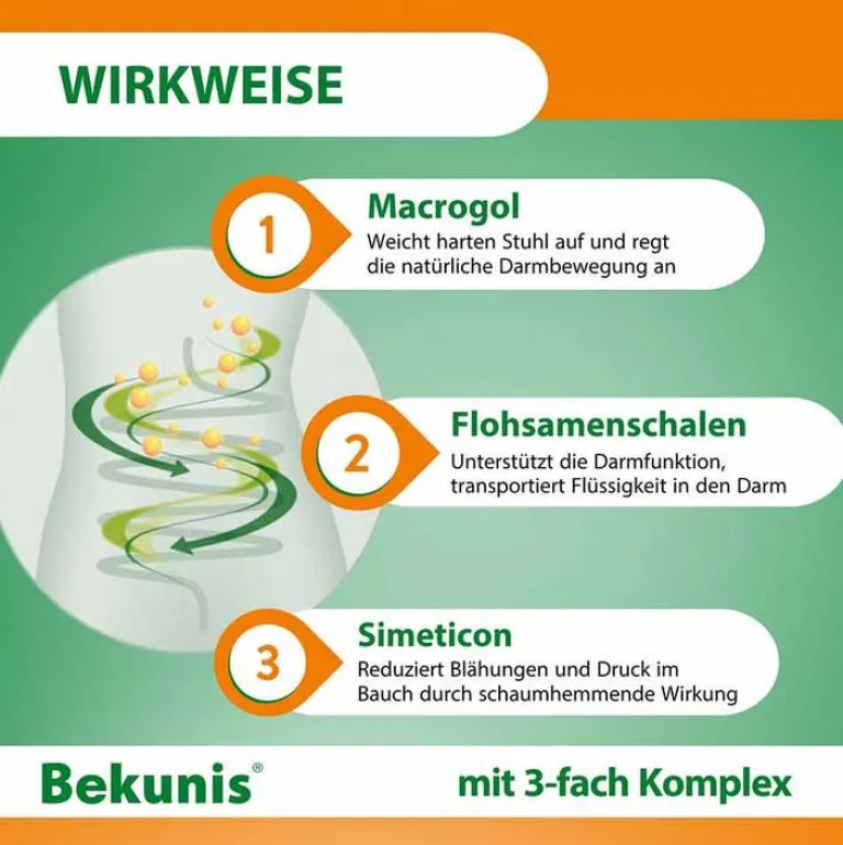 - Weicht harten Stuhl auf, regt die natürliche Darmbewegung an