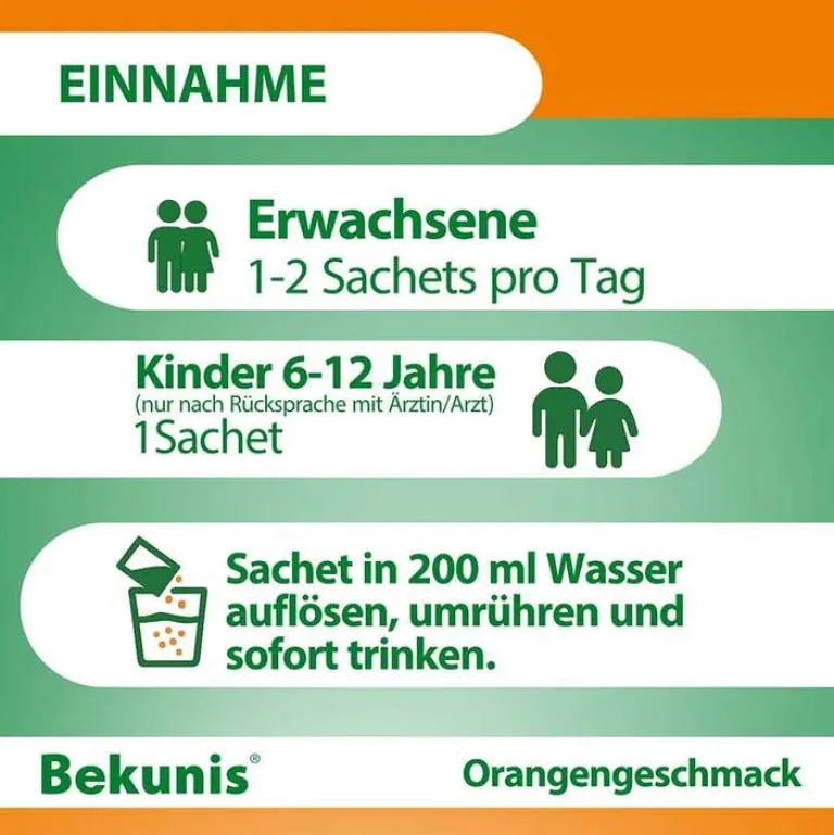 1–2 Sachets pro Tag Kinder von 6 bis 12 Jahren: 1 Sachet pro Tag