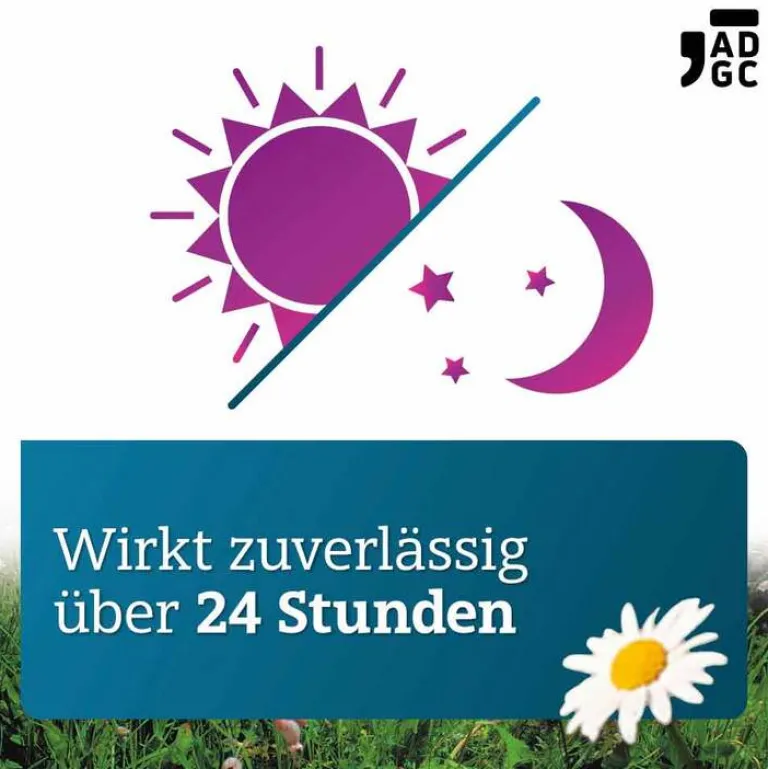 Es wirkt rasch und lang anhaltend. Der in Cetirizin-ADGC® enthaltene Wirkstoff Cetirizindihydrochlorid kann die allergischen Symptome bereits innerhalb einer halben Stunde nach der Einnahme beginnen zu lindern.