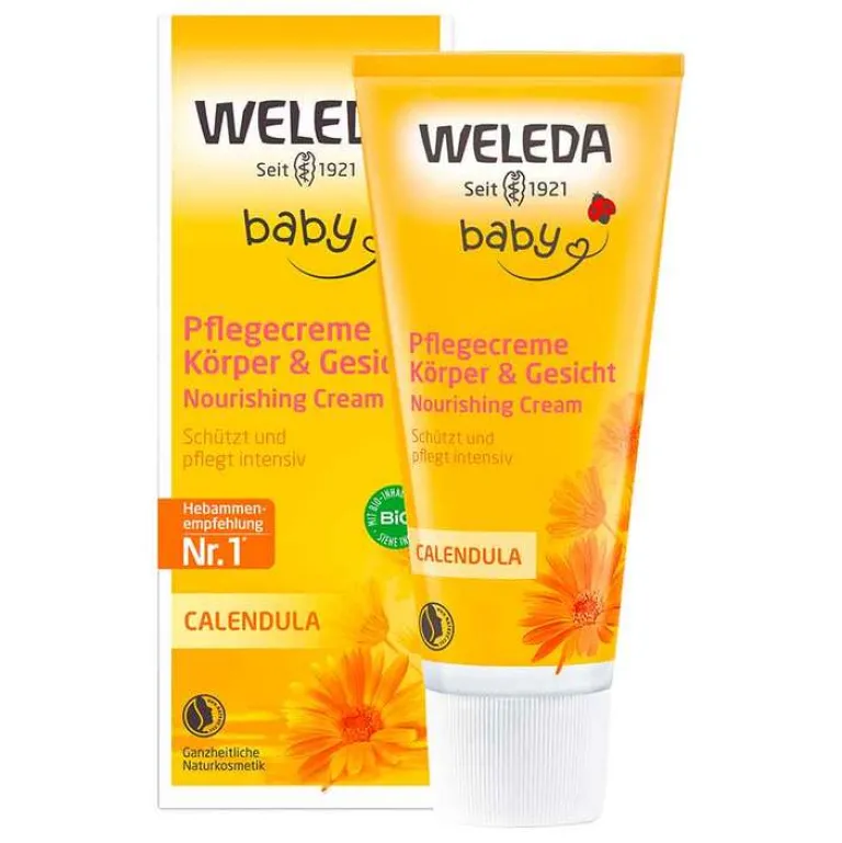 Die Weleda Calendula Pflegecreme Körper & Gesicht ist ideal für die tägliche Körperpflege von Babys und Kindern. Die reichhaltige Pflegecreme mit sorgfältig ausgewählten Natursubstanzen schützt zarte Haut und hält sie samtig weich. Ein wertvoller Auszug aus Bio-Calendula beruhigt die Haut; hautverwandtes Wollwachs bildet einen zuverlässigen Schutz vor dem Austrocknen. Die mild duftende Creme eignet sich auch sehr gut für die Pflege trockener Hautstellen. Auch im Windelbereich anwendbar, wenn keine nässebedingte Entzündungsneigung besteht.