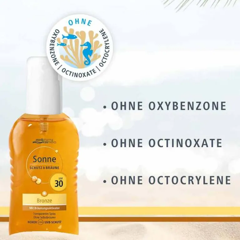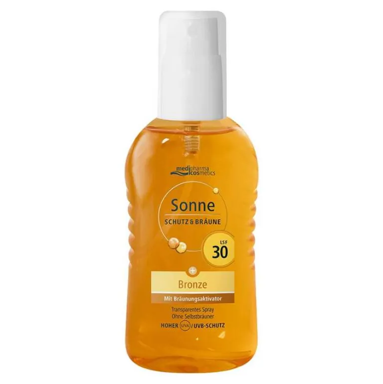 Das ultraleichte und transparente Sonnenspray Schutz & Bräune mit LSF 30 von Medipharma Cosmetics ist für Gesicht und Körper geeignet und bietet Sicherheit und Hautschutz auch bei intensiver Sonneneinstrahlung.