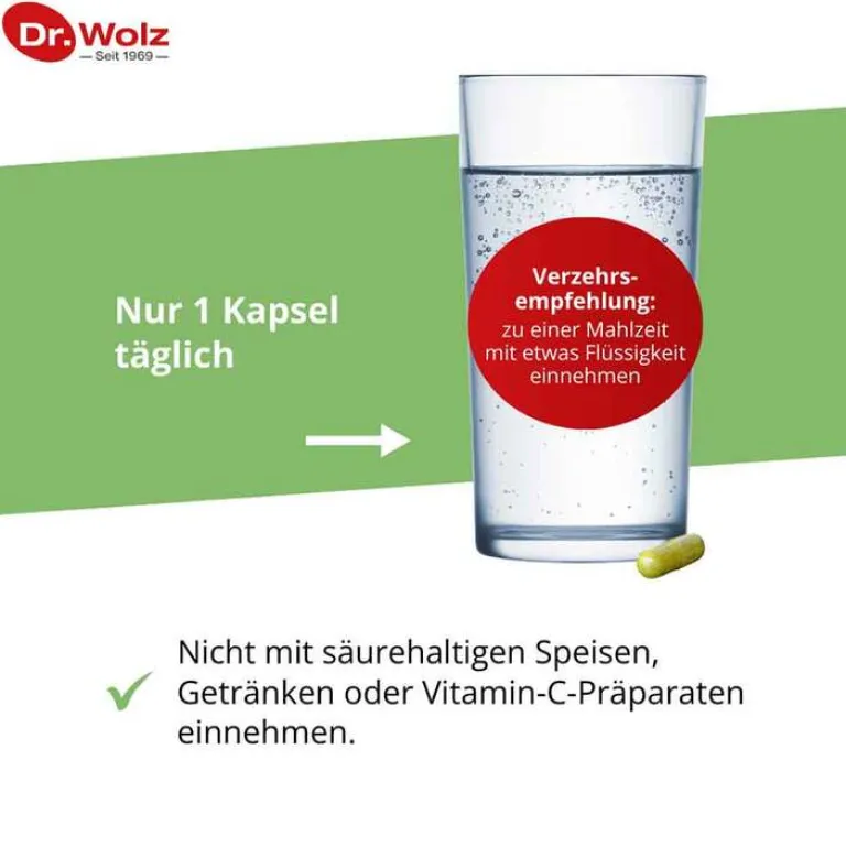 Die angegebene empfohlene tägliche Verzehrsmenge darf nicht überschritten werden. Nahrungsergänzungsmittel sind kein Ersatz für eine ausgewogene und abwechslungsreiche Ernährung sowie eine gesunde Lebensweise.
