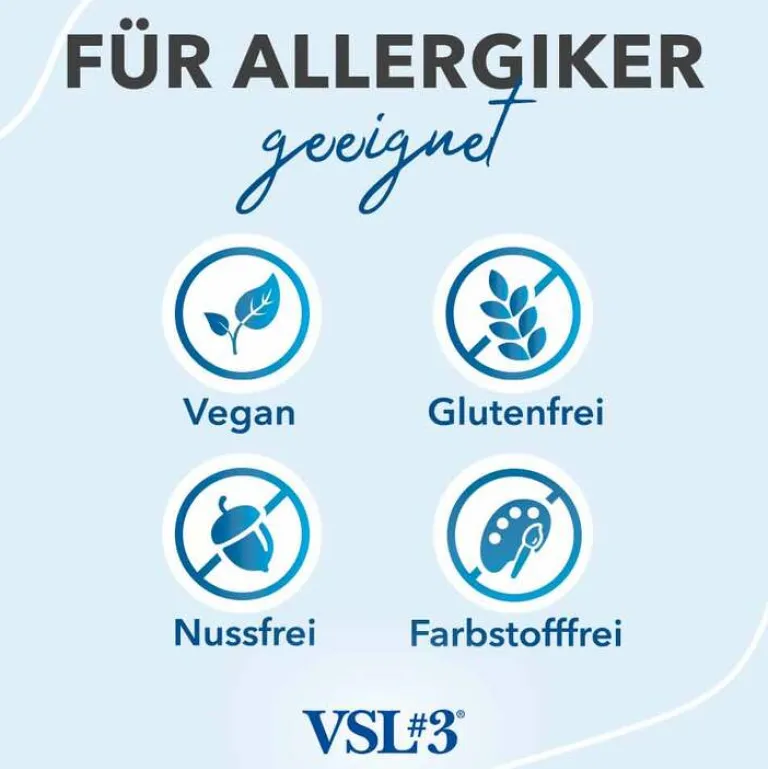 Mit über 450 Milliarden Bakterien pro Dosis (Sachet) ist VSL#3 hochdosiert. Es hat 8 Bakterienstämme aus Milchsäure- und Bifidobakterien und Streptokokken, die natürlicherweise im menschlichen Darm vorkommen.