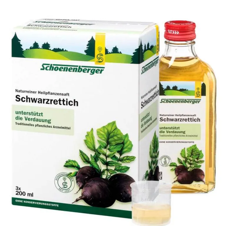 Traditionelles pflanzliches Arzneimittel. Naturreiner Heilpflanzensaft Schwarzrettich wird traditionell angewendet zur Unterstützung bei leichten Verdauungsbeschwerden. Das Arzneimittel ist ein traditionelles Arzneimittel, das ausschließlich auf Grund langjähriger Anwendung für das Anwendungsgebiet registriert ist.