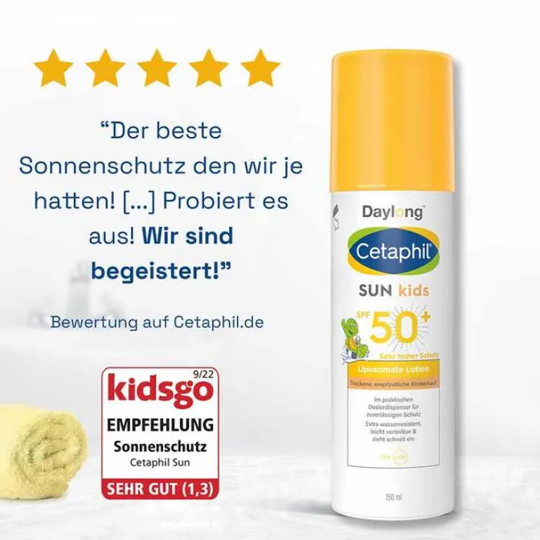 - hohe Produktzufriedenheit: 98% der Konsumenten empfehlen Cetaphil Sun Daylong Kids weiter ²