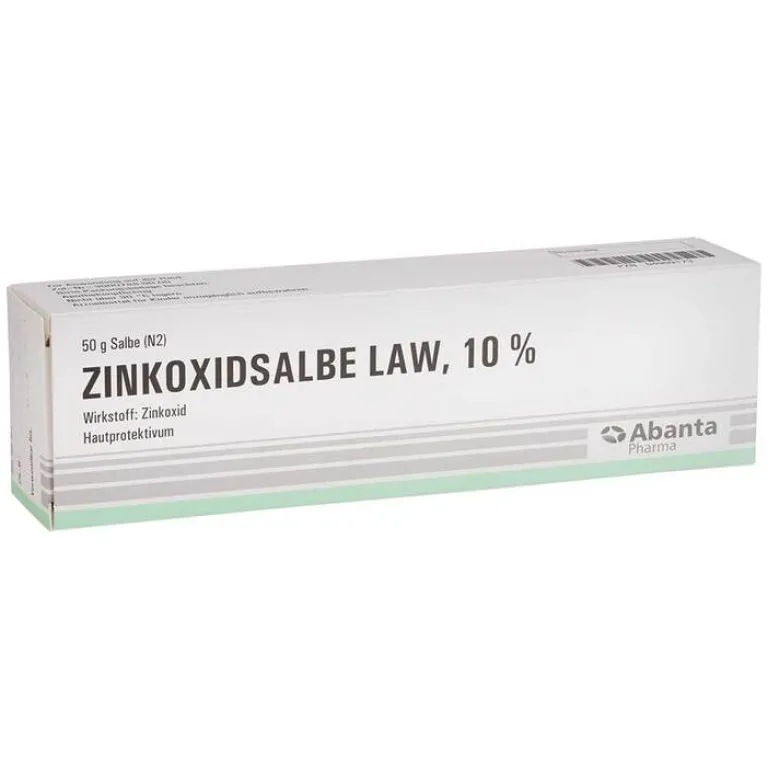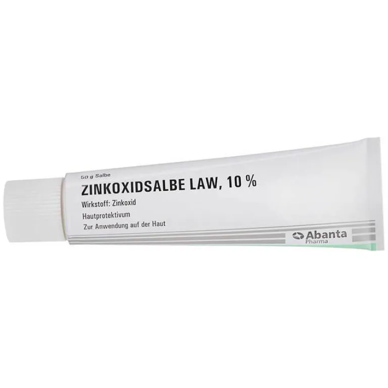 ZINKOXIDSALBE LAW, 10 %. Wirkstoff: Zinkoxid. Anwendungsgebiet: Zinkoxid wirkt abdeckend-protektiv und sekretbindend bei akuten und subakuten Dermatosen. Apothekenpflichtig. Zu Risiken und Nebenwirkungen lesen Sie die Packungsbeilage und fragen Sie Ihre Ärztin, Ihren Arzt oder in Ihrer Apotheke. Abanta Pharma GmbH