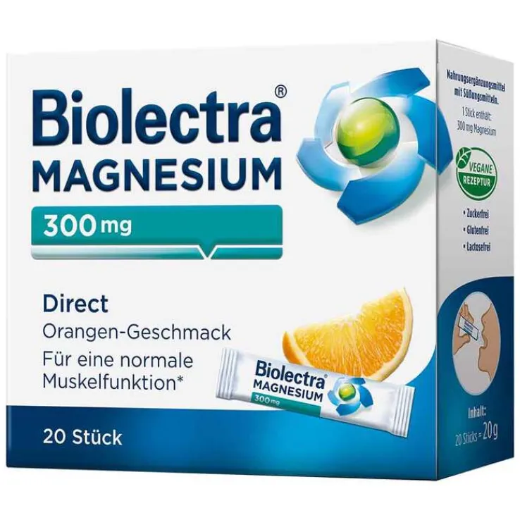 Die moderne Magnesium-Versorgung: Biolectra Magnesium Direct ist die zeitgemäße und praktische Magnesium-Versorgung, mit der man seine Magnesium-Speicher einfach wieder auffüllen kann. Dank der besonderen Darreichungsform als Micro-Pellets d. h. als kleine Kügelchen kann Biolectra Magnesium Direct ohne Flüssigkeit eingenommen werden. Bereits ein Stick täglich genügt, um die von der Deutschen Gesellschaft für Ernährung empfohlene Tagesdosis von 300 mg Magnesium aufzunehmen.