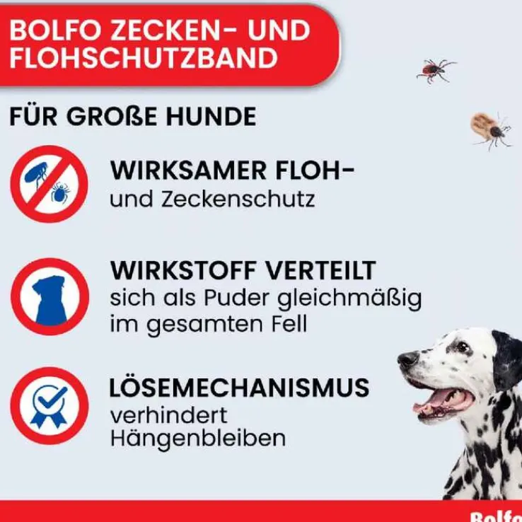 Warnhinweis: Tiere, die ein Bolfo® Zecken- und Flohschutzband tragen, sind von Kleinkindern und Säuglingen fernzuhalten.