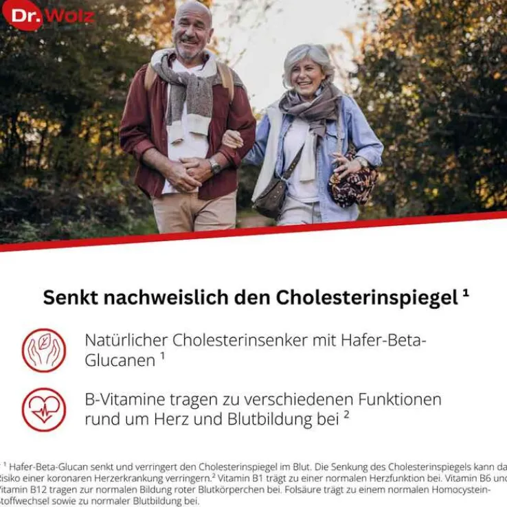 Cholesterinreduktion Dr. Wolz entspricht einer sogenannten Portfolio-Diät. Dies bedeutet: Die sinnvolle Kombination von cholesterinsenkenden, funktionellen natürlichen Stoffen, wie Hafer-Beta-Glucanen, Pflanzensterinen und B-Vitaminen. Bei der Portfolio-Diät verstärken sich die Inhaltsstoffe gegenseitig in ihrer Wirkung. Dass Blutfette, und dabei vor allem das Cholesterin, eine wichtige Rolle bei der Entstehung von Gefäßkrankheiten und Herzinfarkten spielen, ist heute unumstritten.