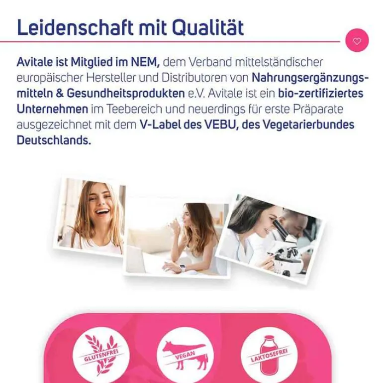 Die tägliche Verzehrempfehlung darf nicht überschritten werden. Nahrungsergänzungsmittel sind kein Ersatz für eine ausgewogene und abwechslungsreiche Ernährung und gesunde Lebensweise.