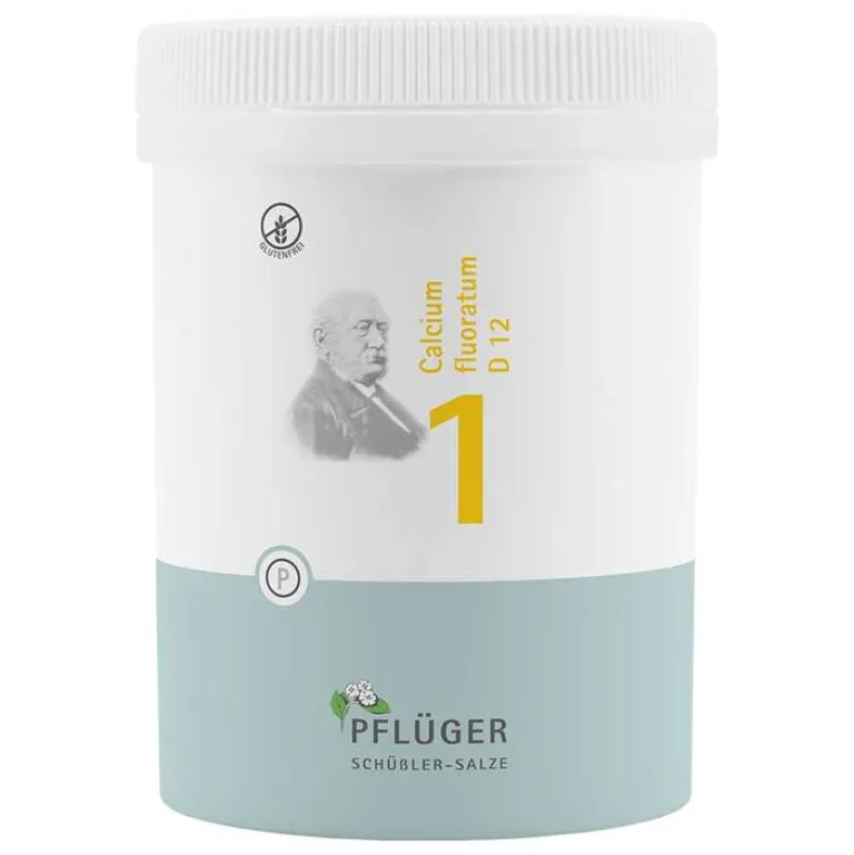 Biochemie Pflüger® Nr. 1 Calcium fluoratum D12, Zusammensetzung: 1 Tablette enthält: Wirkstoff: Calcium fluoratum Trit. D12 250 mg. Sonstige Bestandteile: Calciumbehenat (DAB), Kartoffelstärke. Registriertes homöopathisches Arzneimittel, daher ohne Angabe einer therapeutischen Indikation. Gegenanzeigen/Nebenwirkungen: keine bekannt. Enthält Lactose. Packungsbeilage beachten. Zu Risiken und Nebenwirkungen lesen Sie die Packungsbeilage und fragen Sie Ihre Ärztin, Ihren Arzt oder in Ihrer Apotheke. Homöopathisches Laboratorium Alexander Pflüger GmbH & Co. KG, 33378 Rheda-Wiedenbrück | [email protected] | www.pflueger.de