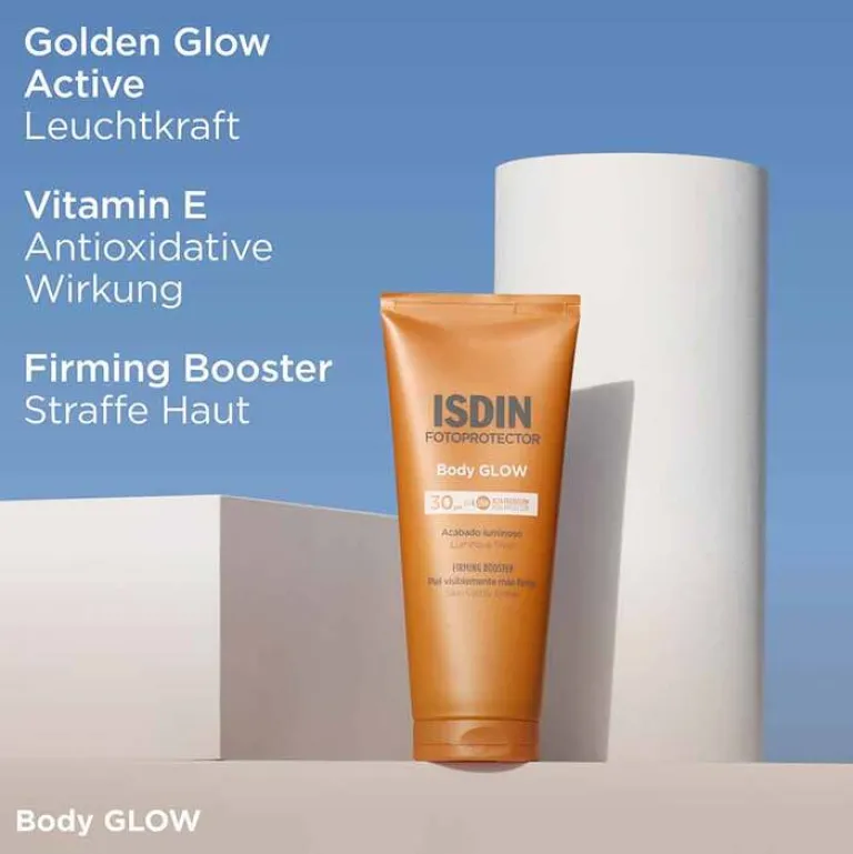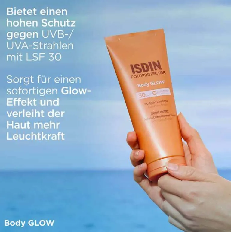 ISDIN Body Glow Sonnenmilch LSF 30 ist mehr als nur eine Sonnencreme für den Körper. Es ist eine fortschrittliche Sonnenlotion, die speziell entwickelt wurde, um Ihrer Haut umfassenden UVA- und UVB-Schutz zu bieten, während sie gleichzeitig für Leuchtkraft und einen sofortigen Glow-Effekt sorgt.