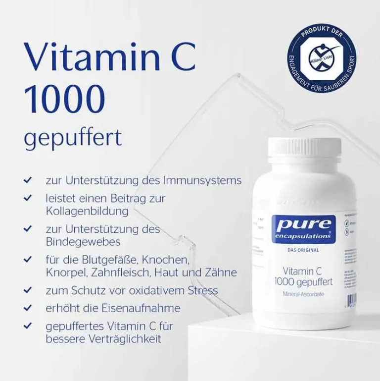 - Vitamin C unterstützt eine normale Gefäßfunktion durch Einfluss auf die Kollagenbildung und das körpereigene Immunsystem