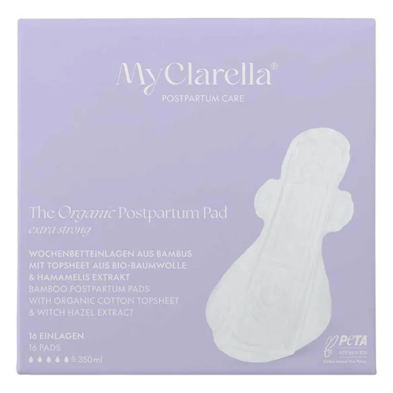 Die MyClarella Wochenbettbinde Extra Stark wurde als innovative Lösung für den starken Wochenfluss nach der Geburt entwickelt. Sie nimmt bis zu 350 ml Flüssigkeit auf und bietet hohen Komfort und Schutz. Die Binde wurde speziell für Frauen mit starkem Wochenfluss konzipiert und verhindert zuverlässig ein Auslaufen. Ihre verlängerte und breitere Form, ergänzt durch Flügel, sorgt für zusätzlichen Schutz und ein sicheres Tragegefühl.