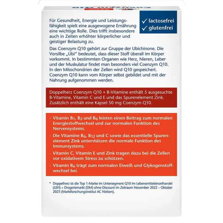 Nahrungsergänzung mit 50 mg Coenzym Q10, B-Vitaminen sowie Vitamin C, Vitamin E und dem Spurenelement Zink