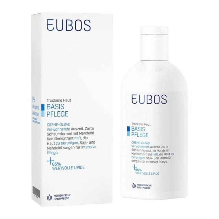 Das Creme Ölbad enthält eine rückfettende, pflegende Lipidmischung kombiniert mit mild reinigenden Waschrohstoffen. Das Eubos Creme Ölbad ist mit Soja- und Mandelöl, reich an ungesättigten, essentiellen Fettsäuren. Der enthaltene Kamillenextrakt beruhigt die Haut. Es sind über 65% reichhaltige und pflegende Öle enthalten, die sich schon beim Baden wie ein schützender Film auf die Haut legen. Die Verträglichkeit wurde dermatologisch getestet.