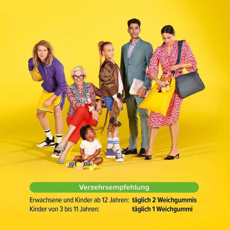 Erwachsene und Kinder ab 12 Jahren können täglich bis zu 2 Weichgummis verzehren.