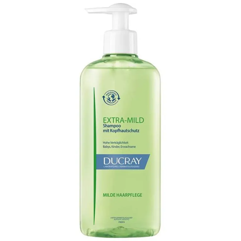 Das Ducray Extra Mild Shampoo reinigt Haare und Kopfhaut besonders sanft. Es ist aufgrund seiner hochverträglichen Formulierung mit dezentem, hypoallergenem Duft für die tägliche Haarwäsche der ganzen Familie geeignet (Babys ab 2 Monate).